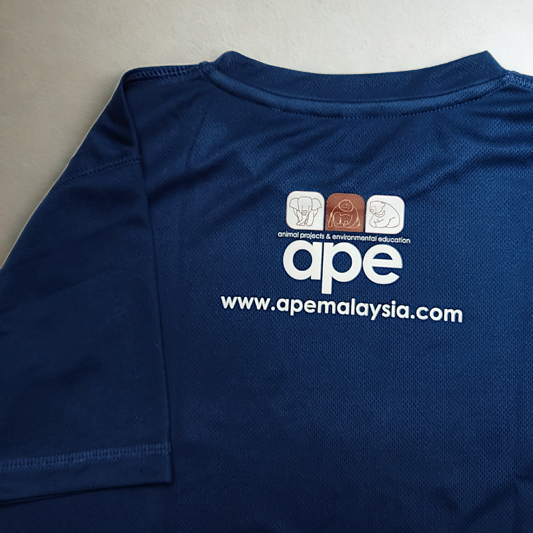 Our t-shirt designs are based on the three animals that represent APE Malaysia – the pygmy elephant, orangutan, and sun bear. These three iconic animals can be found living in the rainforest, close to our project site, and are keystone species in our Bornean rainforests. By purchasing these t-shirts, you are supporting our work in restoring and preserving the habitat that’s crucial for the conservation of these species and many more!